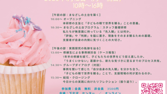 お知らせ 【2月開催】子どもの眼で世界を観る実践探究® ワークショップ&事例検討会のご案内 PO法人日本セラプレイ協会では、2026年2月に韓国から教育人類学の第一人者、徐根源(ソ・グンウォン)教授をお招きし、特別なワークショップと講演会を開催いたします。 どれほど知識や経験を重ねても、それが目の前の子どものニーズと響き合わなけれ... 2026.01.12 お知らせ