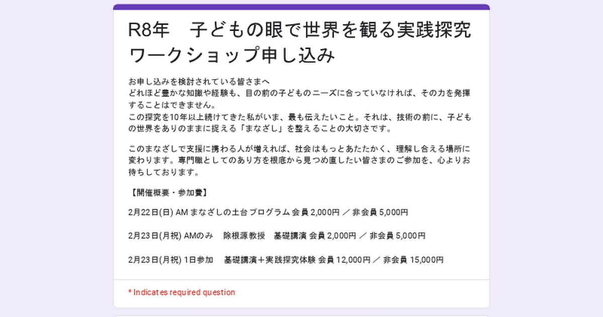 R8年 子どもの眼で世界を観る実践探究 ワークショップ申し込み